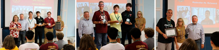 During the weekend, three groups of “Super Seniors” who served as Ambassadors last year, were presented with the 2024-2025 Tom Gambardella ACTION Advocacy Awards for their outstanding work during the ’24-25 year. The winning schools included: Iona Prep (1st prize- pictured left); Brother Rice-Chicago (2nd Prize- pictured middle); and St. Thomas More (Honorable Mention- pictured right).